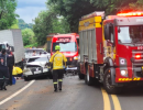 Ocorrência foi registrada na divisa entre Guarujá do Sul e São José do Cedro. Uma das vítimas, com queixa de dores na coluna, foi imobilizada e, junto com a outra vítima, encaminhada ao hospital.