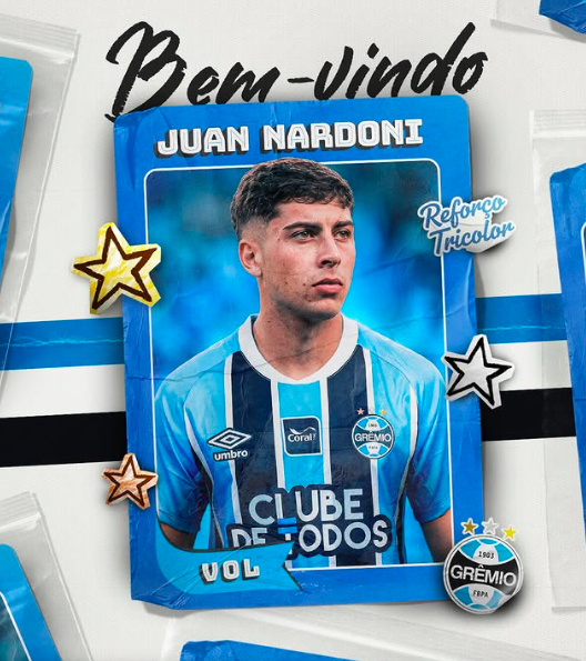 O Grêmio movimentou o mercado sul-americano ao oficializar a contratação do volante argentino Juan Nardoni, de 23 anos, considerado um dos principais nomes da nova geração do futebol argentino. O jogador é aguardado em Porto Alegre na próxima semana para a realização de exames médicos e assinatura de contrato de longo prazo, válido até 2029.