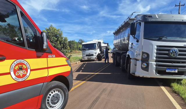Uma colisão traseira entre dois caminhões foi registrada na manhã desta terça-feira (23), por volta das 9h30, na BR-163, em São José do Cedro.