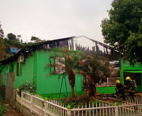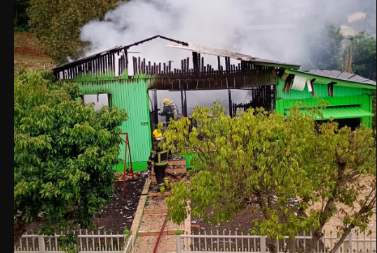Um incêndio de grandes proporções atingiu uma residência unifamiliar na tarde desta terça-feira (7), por volta das 16h55, na Rua 12 de Outubro, em Modelo, Oeste de Santa Catarina. A casa, construída em madeira e com aproximadamente 140m², teve cerca de 80% da estrutura destruída pelas chamas. Ninguém ficou ferido.