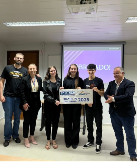 O Senac de São Miguel do Oeste promoveu na última semana, a entrega simbólica da premiação do projeto “OndiTô”, que conquistou o 3º lugar nacional no IDEAthon TransFORMAR 2025, promovido pela Associação Nacional dos Cursos de Graduação em Administração (ANGRAD), em parceria com o Conselho Federal de Administração (CFA).