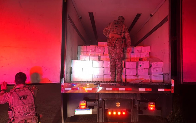 A mercadoria, de importação proibida conforme os órgãos sanitários, foi encontrada durante fiscalização a um caminhão-baú com inscrições de uma banda musical. Quando percebeu que seria flagrado, o motorista desembarcou apressadamente pelo lado do passageiro e correu em direção a uma área de mata às margens da rodovia.
