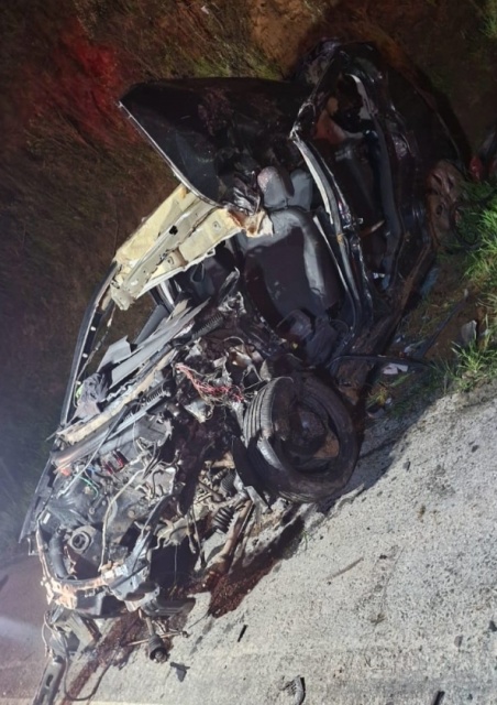 Automóvel onde as vítimas estavam ficou destruído (Fotos: Corpo de Bombeiros)