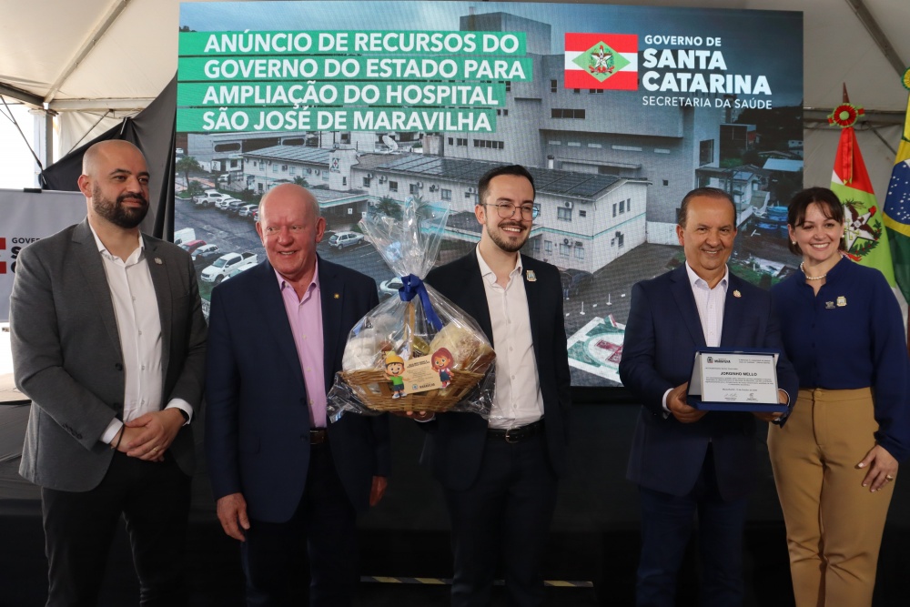 Durante a solenidade, o Hospital São José de Maravilha homenageou o governador Jorginho Mello, o secretário Diogo Demarchi Silva e o deputado Marcos Vieira com uma placa de “Amigo do Hospital”. A Administração Municipal de Maravilha também entregou uma lembrança aos mesmos.