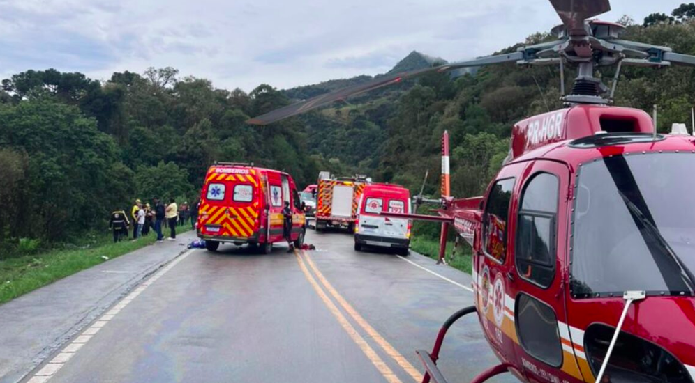 Duas pessoas morreram em um grave acidente na tarde deste domingo (12) envolvendo dois veículos na BR-282, em Bom Retiro, na Serra catarinense. Outras três pessoas tiveram ferimentos moderados a graves, de acordo com o Corpo de Bombeiros Militar, com mobilização do helicóptero Arcanjo-01