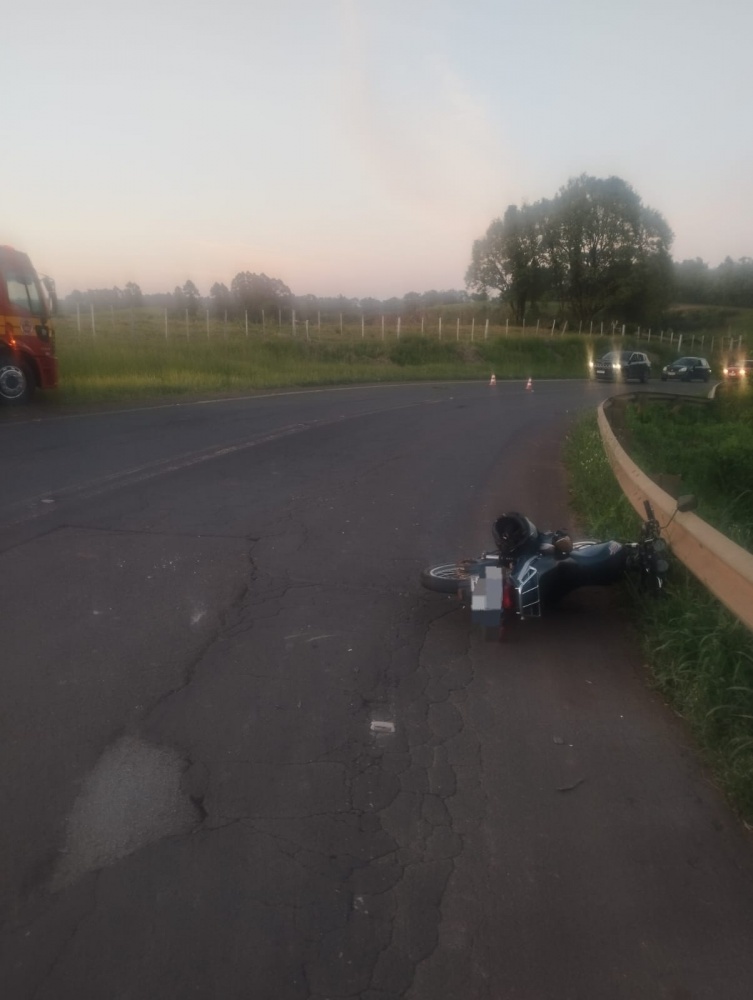 De acordo com a Polícia Militar Rodoviária Estadual (PMRv), o acidente aconteceu por volta das 17h50, em uma curva fechada da rodovia. O motociclista trafegava no sentido Iporã do Oeste–Descanso, quando perdeu o controle e invadiu a pista contrária, colidindo com o caminhão que seguia no sentido oposto.