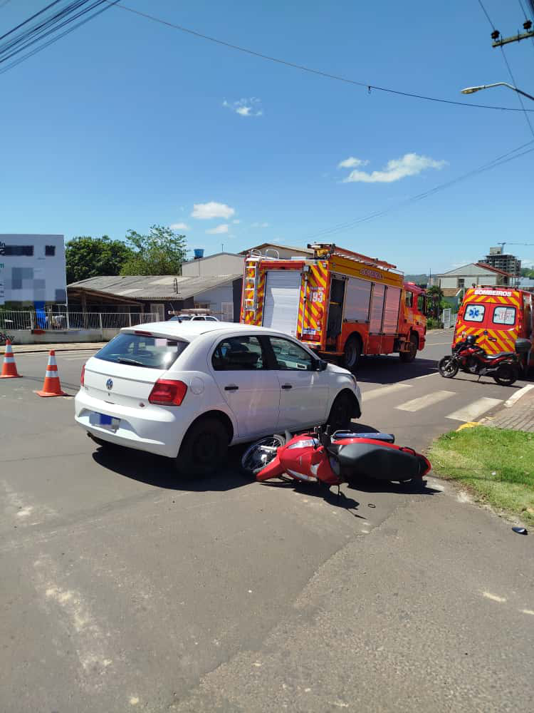 Por volta das 13h10 desta segunda-feira (13), a guarnição do Corpo de Bombeiros Militar de Maravilha foi acionada para atender a um acidente de trânsito envolvendo um automóvel e uma motocicleta em Maravilha. A ocorrência foi registrada na Avenida Sete de Setembro, na rótula próxima ao Cemitério Municipal.
