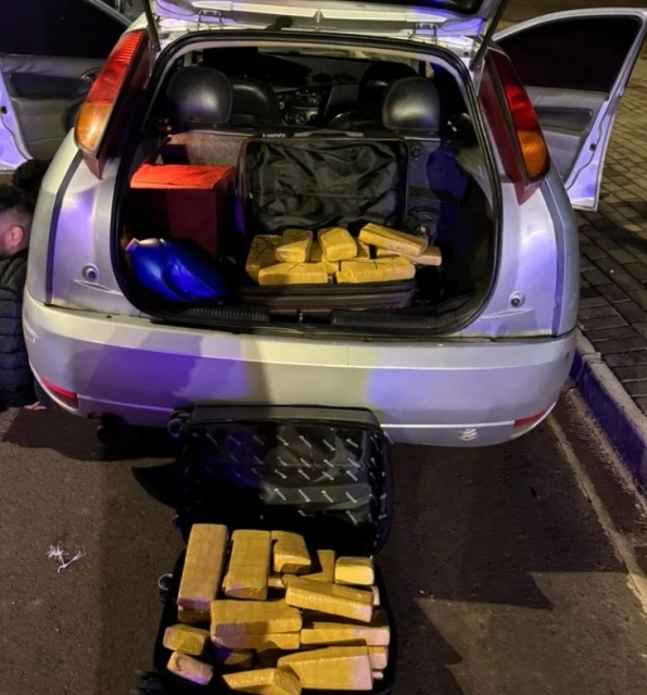 No interior do veículo, os policiais encontraram duas malas contendo 65 tabletes de maconha, totalizando cerca de 35 quilos. O motorista, um venezuelano de 26 anos, e o passageiro, um brasileiro de 18, foram presos em flagrante e encaminhados à 12ª Central Regional de Plantão Policial de Pato Branco (PR).