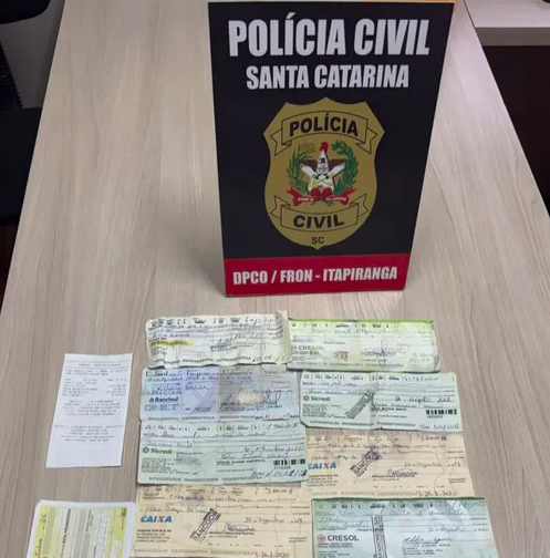 Durante o cumprimento da ordem judicial, os policiais apreenderam 13 cheques de diferentes titularidades, somando mais de R$ 130 mil, além de duas notas promissórias em branco e um comprovante de depósito bancário de R$ 19.900,00.