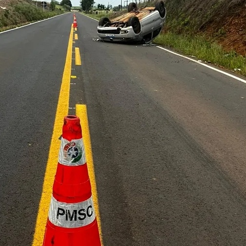 A saída de pista seguida de capotamento envolveu um VW/Gol com placas de São Miguel do Oeste e aconteceu por volta das 4h30, próximo à comunidade de Linha Santa Rita.