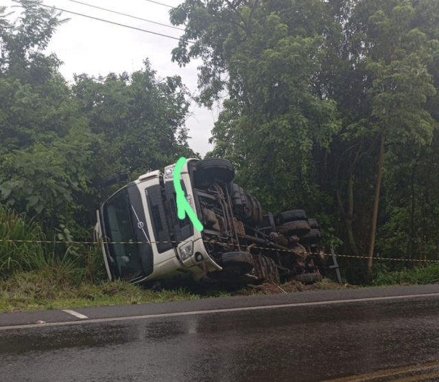 Um caminhão, com placas do Rio de Janeiro (RJ), saiu da pista e tombou no final da tarde da quinta-feira (16) na rodovia SC-157, no município de Quilombo, no Oeste de Santa Catarina. O acidente, registrado por volta das 16h, deixou o motorista ferido.