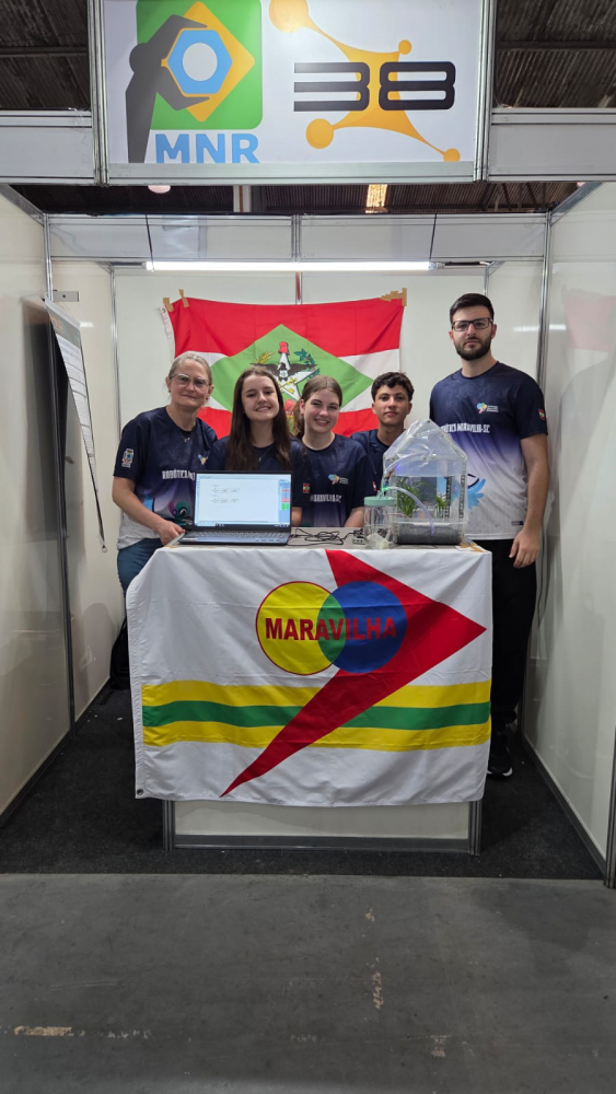 Na MNR, o município foi representado pelo professor Vinicius de Jesus e pelos alunos Lucas Maciel Schmidt, Eduarda Rizzi Donati e Larissa Schneider, que apresentaram o projeto “Estufa automatizada: solução sustentável para o cultivo de plantas”. O trabalho ficou entre os 16 melhores na etapa estadual, recebendo certificado de menção honrosa. A equipe selecionada para apresentação, demonstrando grande dedicação e talento, mesmo não avançando para a próxima fase.