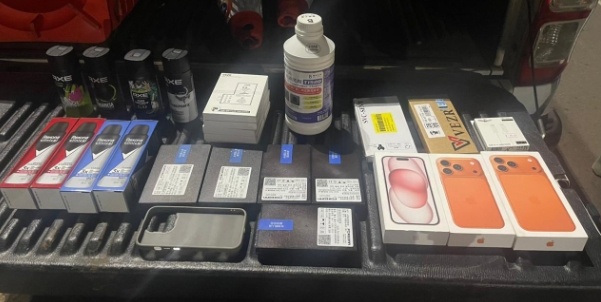 Entre os produtos estavam celulares iPhone, baterias, displays de aparelhos e itens de perfumaria.
