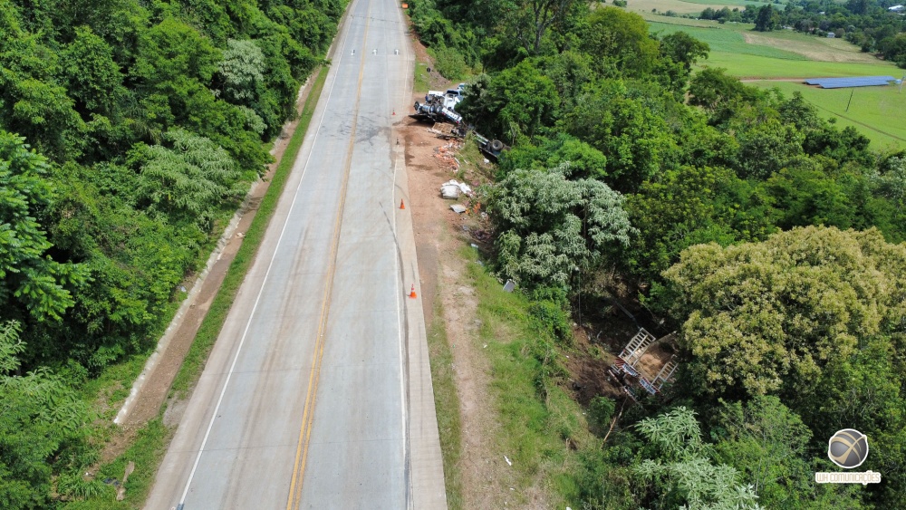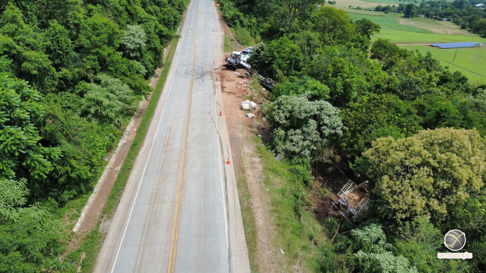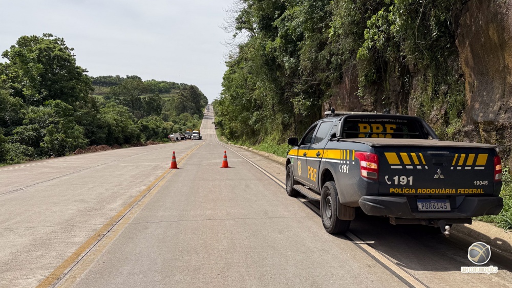 A BR-163, no trecho entre Guaraciaba e São José do Cedro, foi totalmente interditada nesta quinta-feira (23) para a retirada dos caminhões envolvidos no grave acidente da tarde anterior.