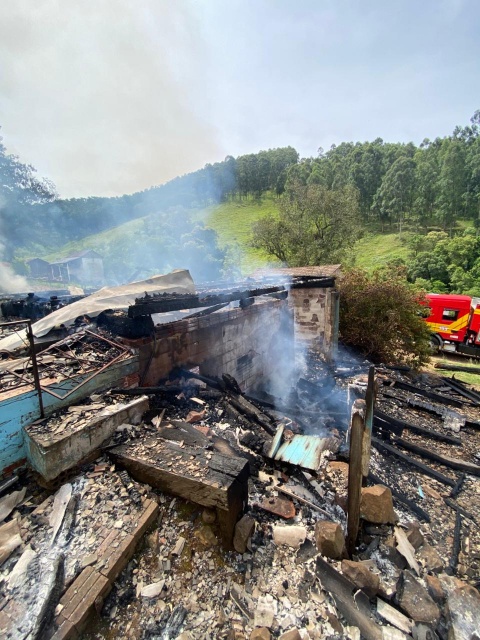 Um incêndio destruiu completamente uma casa na comunidade de Linha Seis Barras, no interior de São José do Cedro, no início da tarde desta quinta-feira (23). O Corpo de Bombeiros Militar foi acionado por volta das 12h32, mobilizando as guarnições das viaturas ABTR-141 e ASU-518.