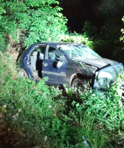De acordo com o Corpo de Bombeiros, o veículo de passeio saiu da pista e capotou, ficando preso em uma árvore na encosta. No interior do automóvel estavam duas pessoas, que apresentavam ferimentos no rosto e dores no peito.