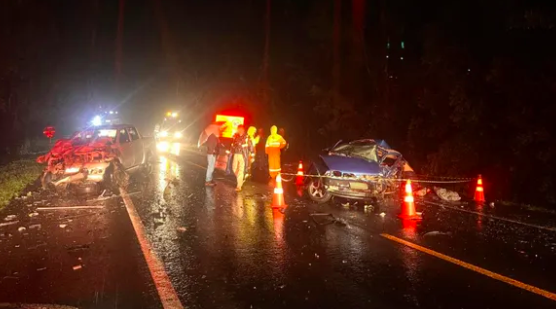 Três homens e uma mulher morreram em um acidente entre dois carros e uma caminhonete na noite deste sábado (1) na BR-373 em Guamiranga, na região central do Paraná.
