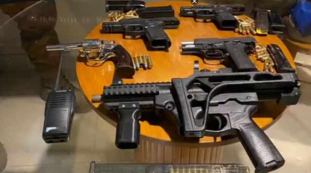 Cinco armas foram apreendidas: uma submetralhadora, três pistolas, um revólver, além de munições de calibres variados e rádios comunicadores. A submetralhadora teria sido usada em um assalto a um posto de combustível na SC-401, na última quinta-feira (30).