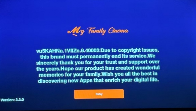 “Devido a questões de direitos autorais, esta marca deve encerrar permanentemente seus serviços. Agradecemos sinceramente pela sua confiança e apoio ao longo dos anos. Esperamos que nosso produto tenha proporcionado boas lembranças para você e sua família.”