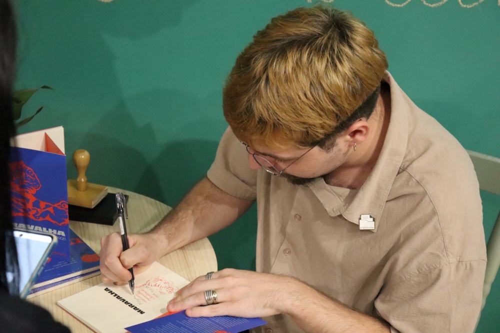 Em uma noite marcada por um bate-papo sobre cultura, literatura e processo de escrita, o jornalista e escritor maravilhense Hiago Rizzi lançou o livro “Maravalha” (Telaranha 2024) em sua cidade natal. A obra reúne 50 poemas escritos ao longo de cinco anos. O evento, realizado na última terça-feira (4), recebeu o público no Caramelo Café, e contou com a mediação da jornalista Diana Heinz e do professor e artista Alexssandro Schappo.