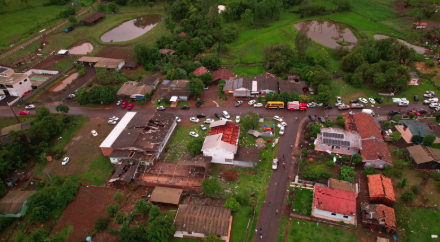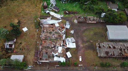 Em Xanxerê, houve destruição parcial de estruturas, danos a veículos e o tombamento de um ônibus. Já em Faxinal dos Guedes, os levantamentos apontaram árvores arrancadas em diferentes sentidos e telhados danificados, evidenciando a forte circulação de ventos.