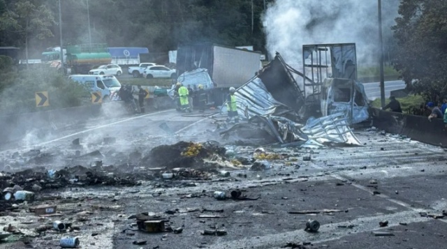 Um grave engavetamento envolvendo um caminhão-baú, uma carreta e uma van deixou um motorista morto e ao menos 14 pessoas feridas na madrugada desta quarta-feira (12), no km 667 da BR-376, em Guaratuba, no Paraná. O acidente ocorreu por volta das 4h45 e provocou incêndio nos veículos logo após o impacto.
