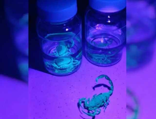 Para facilitar a localização, os profissionais utilizaram lanternas ultravioletas, recurso que permite visualizar os escorpiões em tonalidade verde neon, mesmo na escuridão.