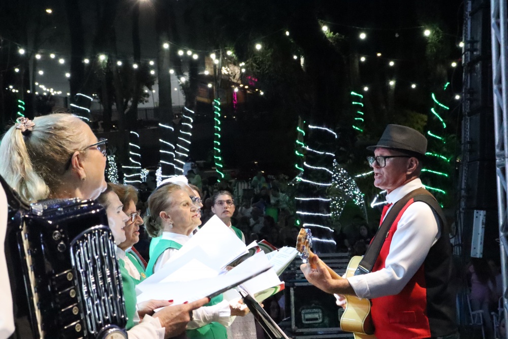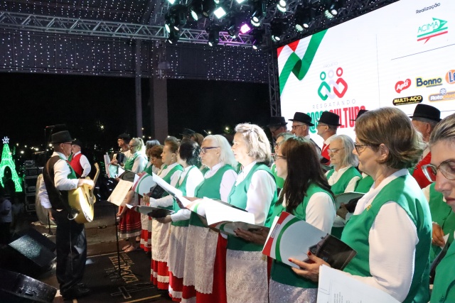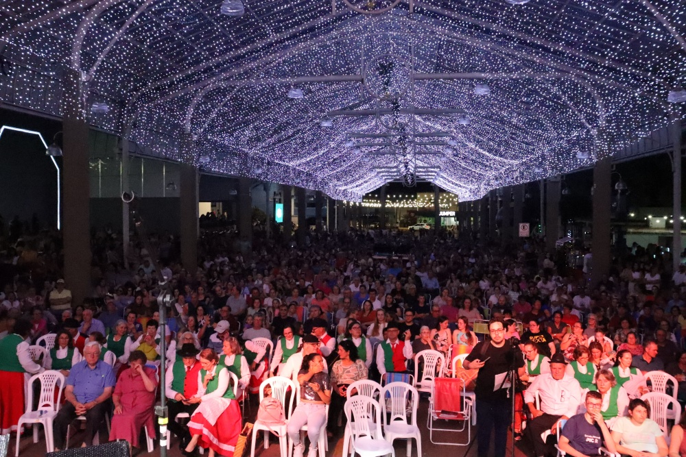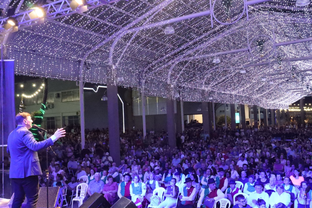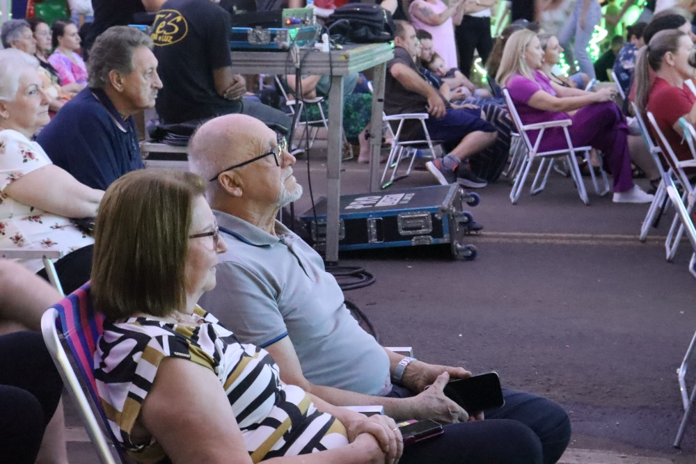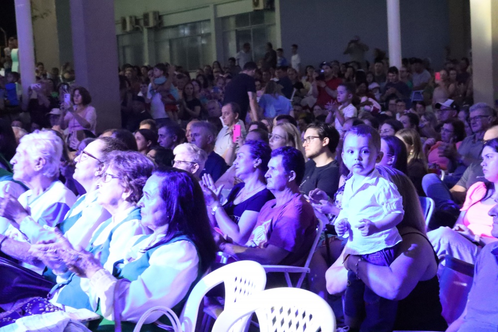 No palco, o Coral da ACIMA encantou o público com seu talento. As apresentações emocionaram os presentes, que cantaram junto em diversos momentos, e o presidente da ACIMA agradeceu o apoio e a participação da comunidade. Na sequência, o público foi presenteado com um show emocionante do Padre Ezequiel Dal Pozzo, que interpretou canções profundas e transmitiu uma mensagem de união e aproximação das famílias, comovendo a plateia.