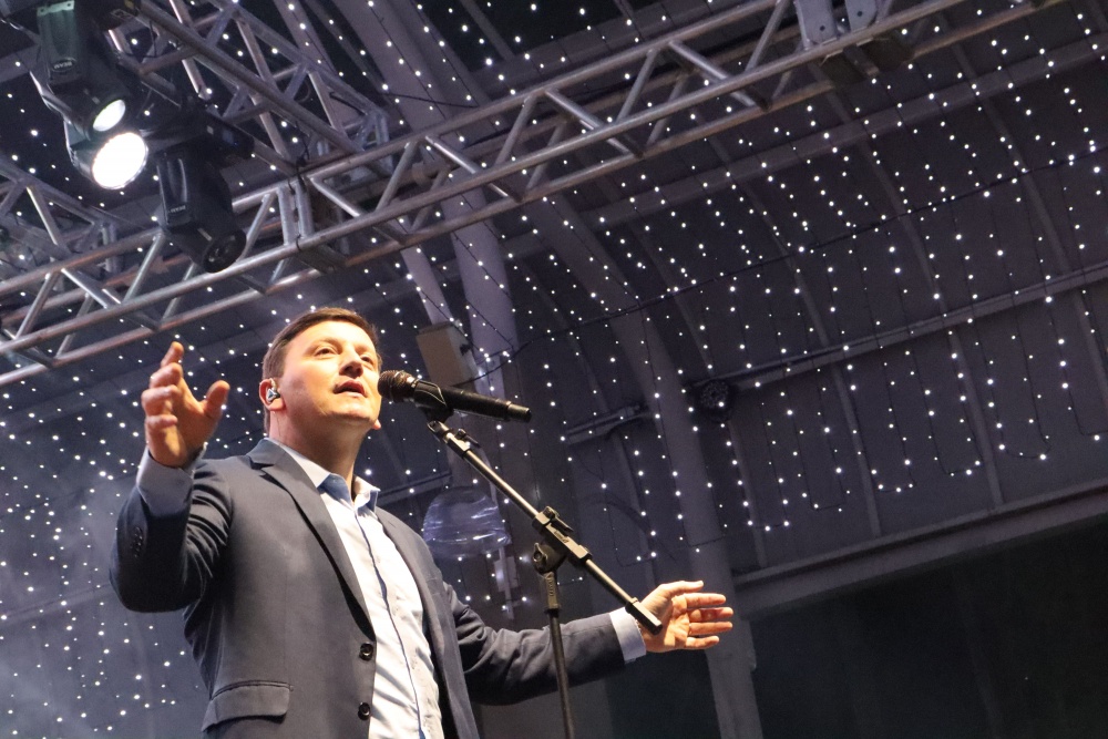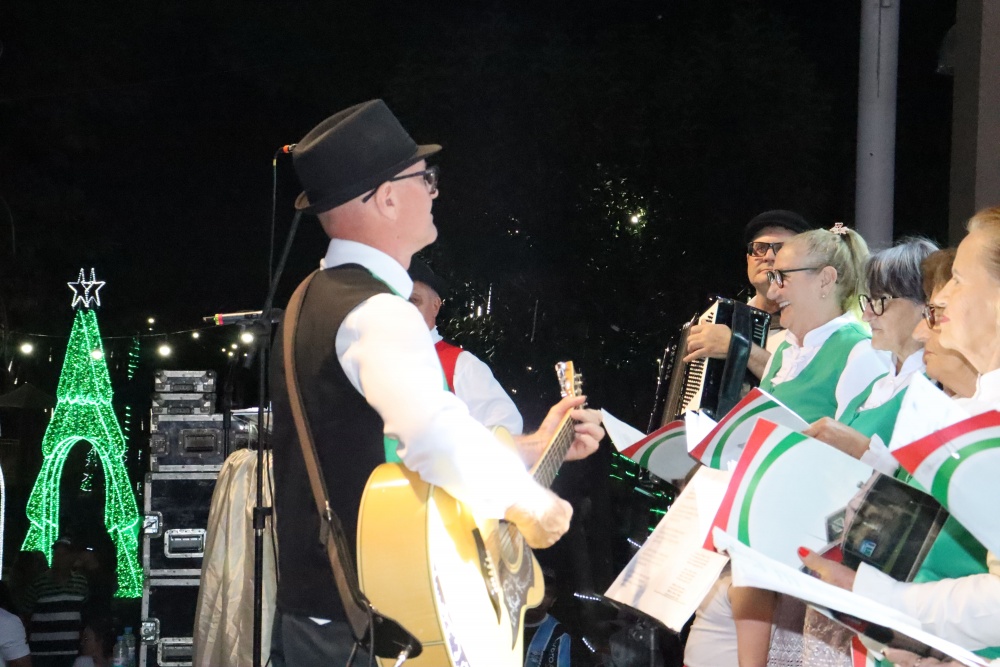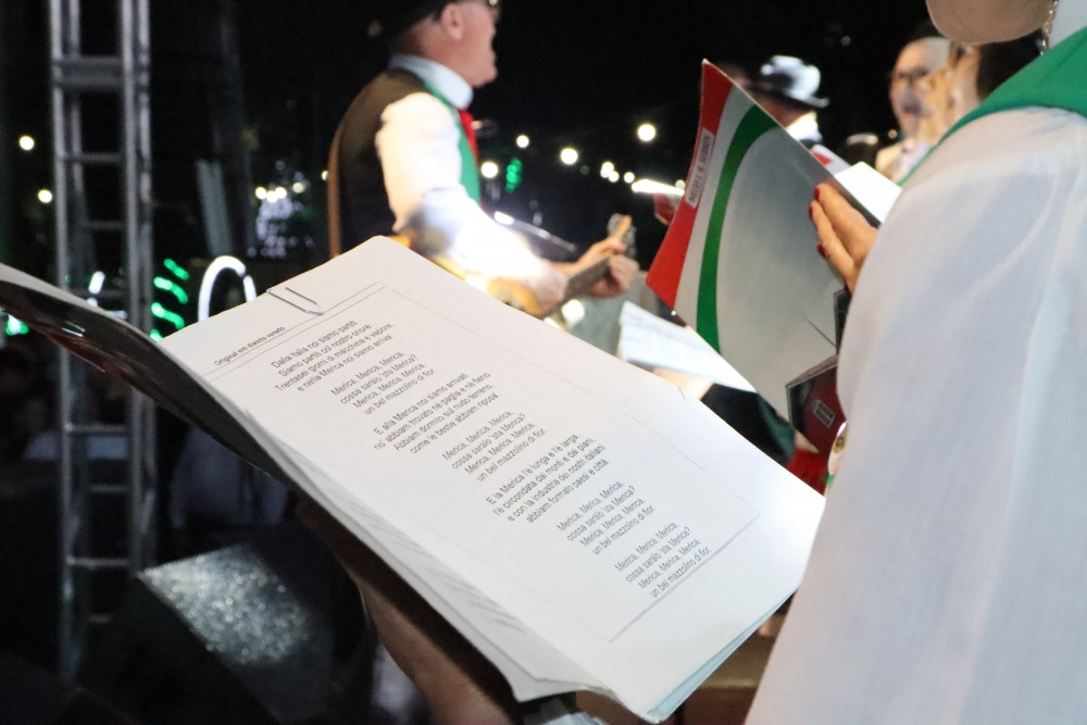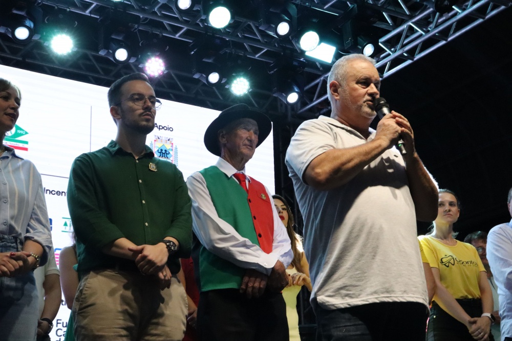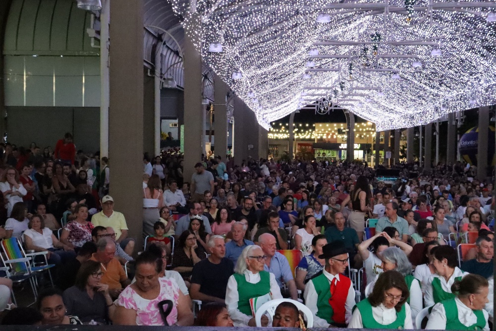 No palco, o Coral da ACIMA encantou o público com seu talento. As apresentações emocionaram os presentes, que cantaram junto em diversos momentos, e o presidente da ACIMA agradeceu o apoio e a participação da comunidade. Na sequência, o público foi presenteado com um show emocionante do Padre Ezequiel Dal Pozzo, que interpretou canções profundas e transmitiu uma mensagem de união e aproximação das famílias, comovendo a plateia.