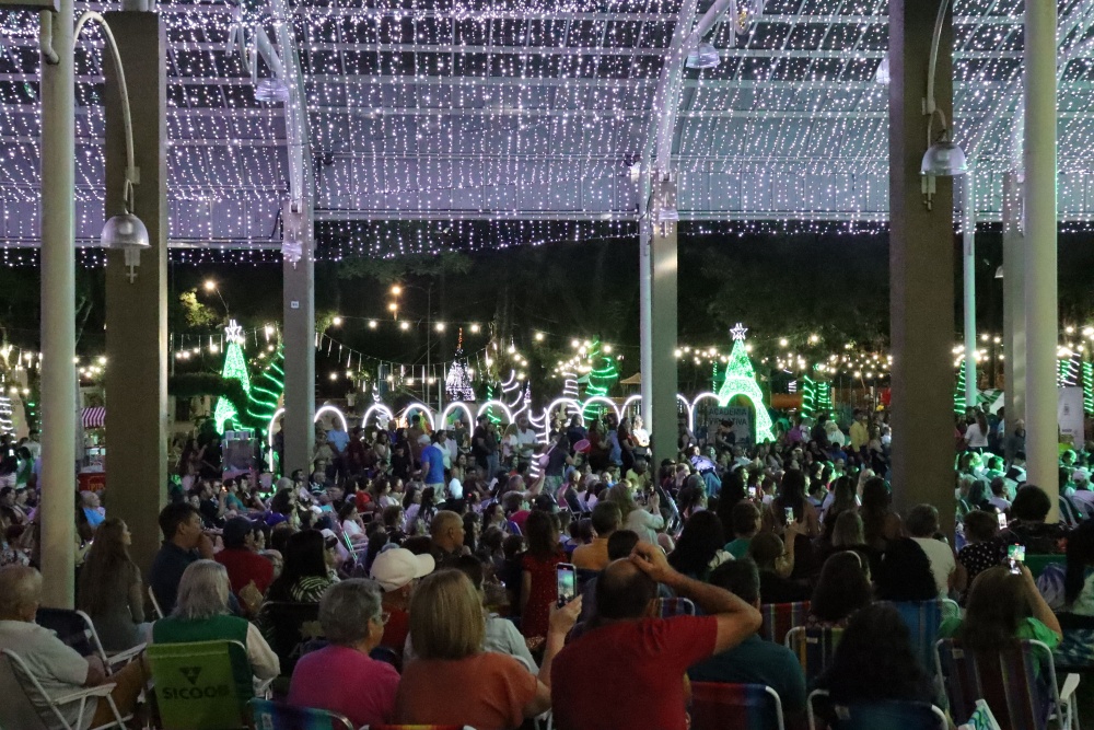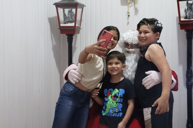Após os pronunciamentos, iniciou-se a contagem regressiva para o aguardado acendimento das luzes de Natal. O ato foi realizado pelo prefeito Vinicius Ventura e pela vice-prefeita Nadia Signor, junto de crianças. A cidade ganhou um brilho especial, colorido e iluminado, reforçando o clima natalino e emocionando o público. Na Praça, a Casa do Papai Noel também foi aberta oficialmente. O bom velhinho atendeu as crianças, distribuiu doces e recebeu longas filas, gerando muita empolgação entre os pequenos.