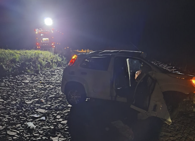 O veículo envolvido, um Fiat Uno, foi encontrado capotado e fora da pista, já estabilizado.