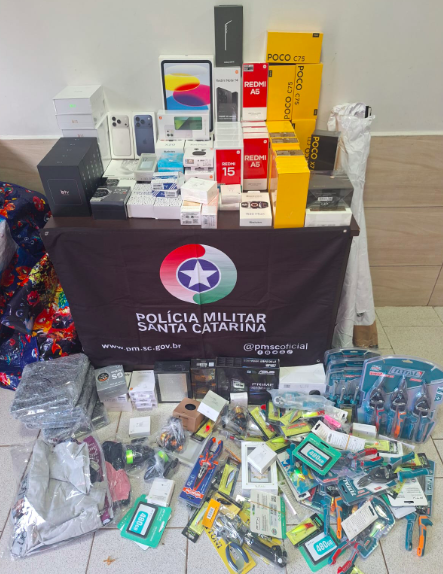 Segundo a PMRv, o carro emplacado em Águas de Chapecó era ocupado por mulheres de 41 e 60 anos. Durante a fiscalização, os policiais encontraram no porta-malas diversas sacolas contendo mercadorias trazidas do Paraguai, incluindo 31 celulares, eletrônicos, ferramentas e outros itens.