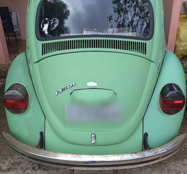 A proprietária do veículo relatou à guarnição que havia deixado seu automóvel, um VW Fusca 1300L de cor verde-claro, estacionado na via pública.