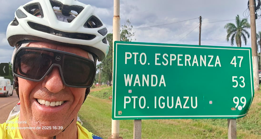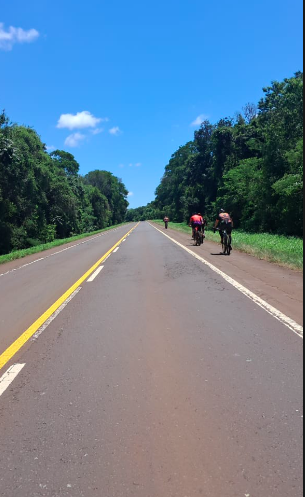 O grupo de ciclistas de São Miguel do Oeste completou neste sábado (22) o último dia da expedição que percorreu Argentina e Paraguai. A etapa final começou cedo, às 5h, na cidade de Eldorado, e terminou às 16h, em Ciudad del Este, no Paraguai. Foram 116 km pedalados no dia, somando 303 km ao longo dos três dias de viagem.