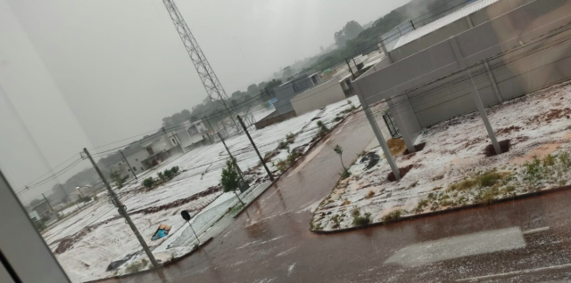 Uma intensa queda de granizo causou estragos na tarde deste domingo (23) em Erechim, no norte gaúcho. A chuva intensa começou por volta das 16h40min e atingiu vários bairros da cidade.