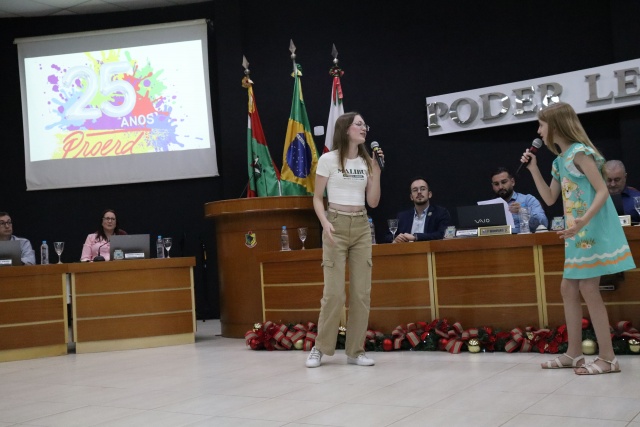 A Câmara Municipal de Maravilha realizou nesta segunda-feira (24) a quarta sessão ordinária de novembro, que ocorreu em caráter especial devido às homenagens alusivas aos 25 anos do Programa Educacional de Resistência às Drogas e à Violência (PROERD) no município. A sessão teve abertura conduzida pelo mestre de cerimônias e diretor geral do Legislativo, Nei Guzatti, que apresentou um breve histórico sobre a criação da Polícia Militar em Santa Catarina e os princípios que orientam o PROERD.