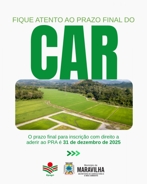 O prazo final para a inscrição no CAR de área de até quatro módulos fiscais, visando a adesão ao Programa de Regularização Ambiental (PRA), é 31 de dezembro de 2025.