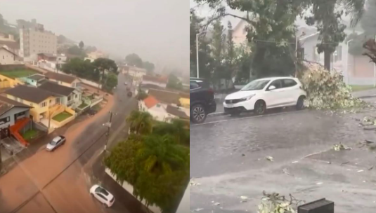 Até o momento, foram registrados destelhamentos pontuais, queda de árvores e ao menos três vias interditadas, segundo a Defesa Civil.