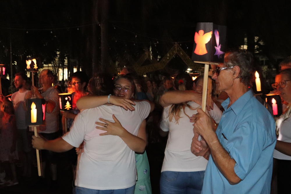 Com as lanternas acesas, a caminhada seguiu pelas ruas da cidade, acompanhada por um carro de som que conduziu canções natalinas. Os organizadores destacam que a luz das lanternas simboliza Jesus Cristo, reforçando a mensagem de acolhimento e fé: “A caminhada mostra que todas as pessoas são bem-vindas e que Cristo nasceu para todos”.