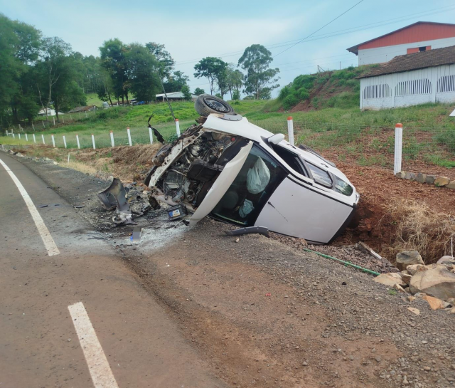 Por volta das 15h37 de domingo (30), equipes de socorro foram acionadas para atender a um acidente de trânsito na SC-492, envolvendo saída de pista, capotamento e incêndio em um veículo FIAT/Palio (placas Mercosul). De acordo com a Polícia Militar, o automóvel trafegava sentido São Miguel da Boa Vista - Romelândia. O Corpo de Bombeiros Militar e o SAMU foram mobilizados.