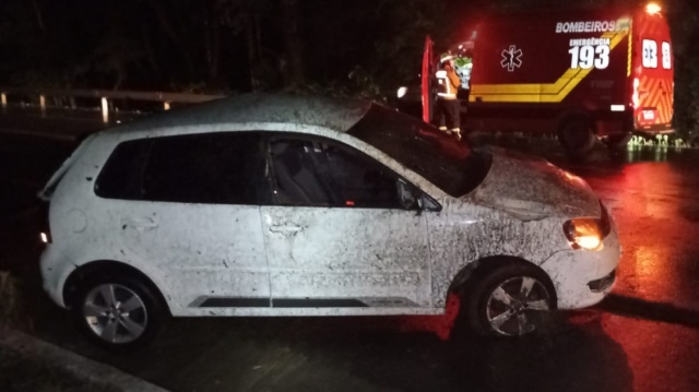 Segundo informações dos bombeiros, o automóvel transportava três ocupantes — um homem, uma mulher e uma criança de 8 anos. Quando o trem de socorro chegou ao local, todos já estavam fora do veículo.