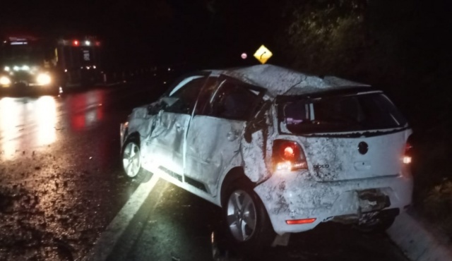 Na noite deste domingo (30), por volta das 22h, equipes do Corpo de Bombeiros Militar de Pinhalzinho e Modelo atenderam um capotamento na BR-282, na Linha Guabiroba, em Saudades.