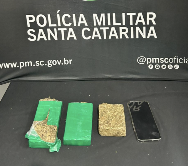 Durante a busca pessoal, os policiais encontraram com um dos ocupantes três tabletes de maconha. Após a pesagem oficial, a droga totalizou 1 quilograma (1 kg).