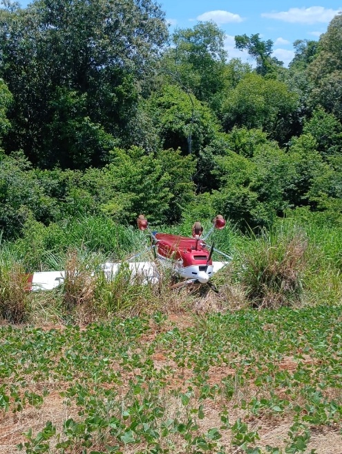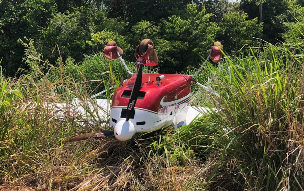 O comandante iniciou os procedimentos de reativação, mas não obteve êxito. Seguindo os protocolos de segurança da aviação, comunicou os órgãos competentes e escolheu uma área de plantação para realizar o pouso de emergência. A aeronave tocou o solo e percorreu alguns metros, mas, devido ao terreno irregular, acabou pilonando — termo técnico utilizado quando o avião vira após o contato com o chão.