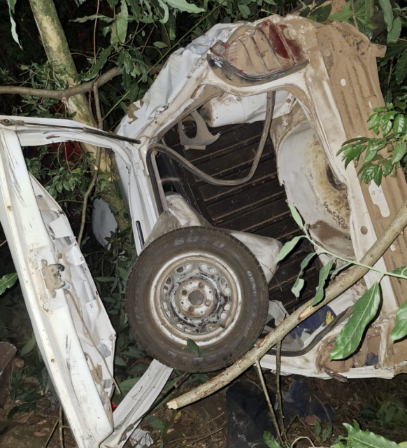 O Corpo de Bombeiros de São José do Cedro confirmou que o veículo caiu em uma área de difícil acesso e ficou lateralizado, apoiado em árvores fora da rodovia. O condutor, que já estava fora do carro quando as equipes chegaram, foi encontrado consciente e orientado, recebendo atendimento inicial da guarnição do ASU-518.