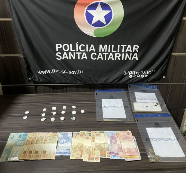 Com o condutor, de 22 anos, foi encontrado um cigarro de maconha parcialmente consumido e dinheiro. Na casa dele, os policiais localizaram 13 buchas de cocaína — idênticas às apreendidas com o primeiro abordado —, além de um torrão de maconha, mais dinheiro em espécie e um smartphone.