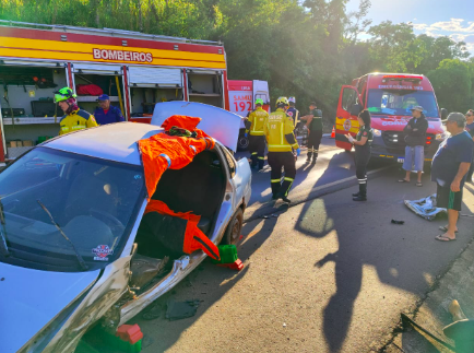 Homem que dirigia o carro sofreu vários ferimentos (Foto: Corpo de Bombeiros)