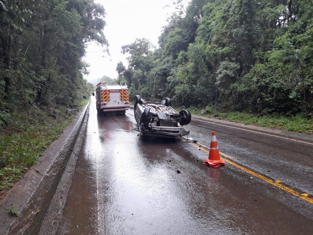 condutor relatou que perdeu o controle do veículo em razão da forte chuva. Após