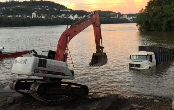 Um caminhão caiu no Rio Uruguai na tarde deste domingo (14), na zona portuária de Barra do Guarita, no noroeste do Estado. O veículo ficou parcialmente submerso.
