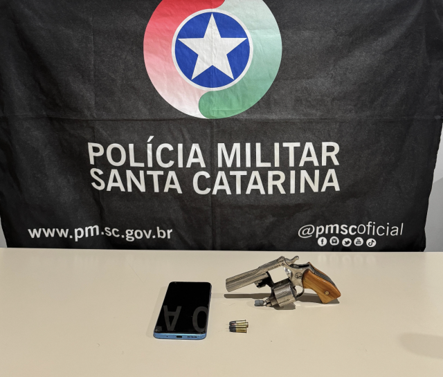 Na revista pessoal, os policiais localizaram um revólver calibre .22, de fabricação argentina, municiado com quatro munições intactas, escondido na cintura do homem. Diante do flagrante, foi dada voz de prisão, sendo necessário o uso de algemas devido ao risco de fuga.